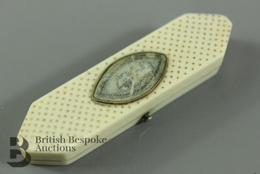 Georgian ivory toothpick box, with mirrored interior approx 7 x 2 x 1 cms (af)