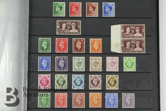 16 Page stockbook of mint GB defin and commemorative stamps, QV and QEII, including higher values such as £1 KGVI Silver Wedding (UMM), blocks and traffic lights.