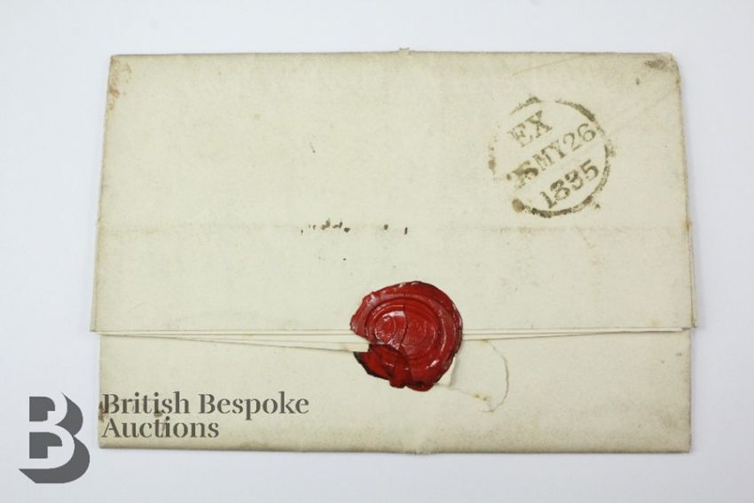 1835 letter to Lord Clinton at Christ Church, Oxford from his sister Georgiana in London, bearing fine Post Office Inspector's star on the front, plus, as a separate item, a very old black and white photograph of a group of men in uniform taken by W Porter of Blackpool, the link to Lord Clinton not being known.