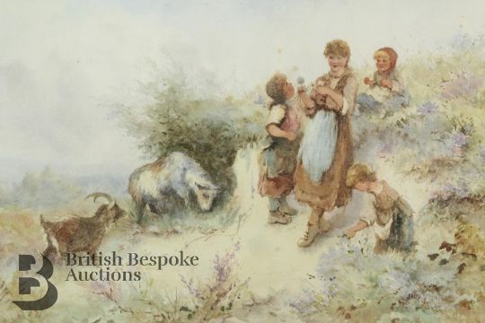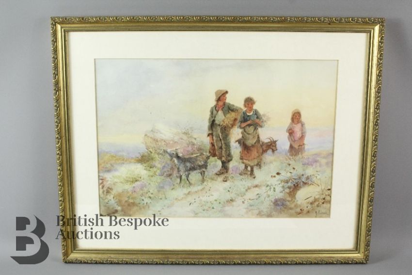 A. Poisson watercolours, both of goat herders near the sea shore, early 20th century, approx 35 x 45 cms, framed and glazed. (2)