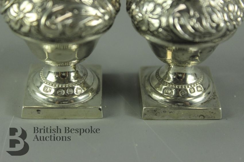 A pair of silver pepperettes, Birmingham hallmark, dated 1894, mm TH, approx 58.3 gms.