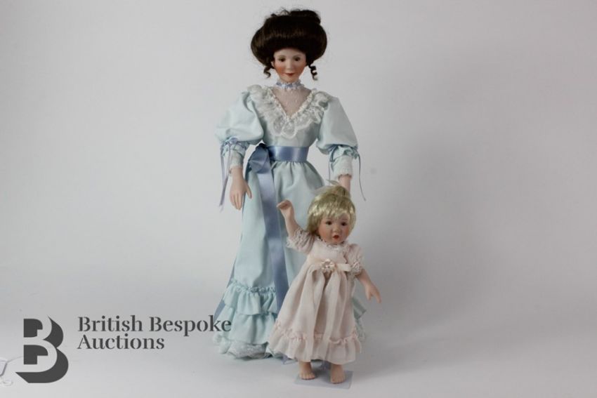1990 Sandra Kuck 'Loving Steps' dolls, approx 43 x 23 cms h, made by Recco International, both figures have finely painted features with full length porcelain bodies, unboxed.