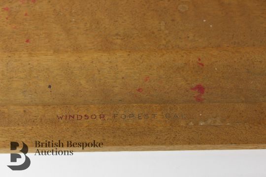 Windsor Forest Oak inkwell; oak base with carved Tudor rose and two glass inkwells, one lid is missing. The oak base measures approx 32 x 24 cms. Together with a felt bowler hat, Dunn & Co, London.