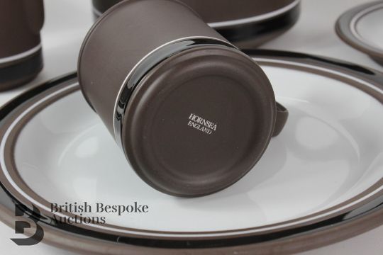 Hornsea Pottery tea service, comprising tea pot,milk jug, creamer, eighteen cups, fourteen coffee cups, twelve saucers, twelve side plates, six medium plates, six larger plates amongst others.