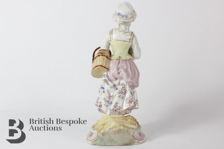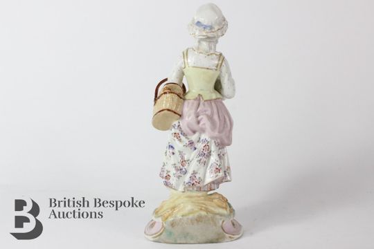 19th century Dresden porcelain figurine, with fine painted features, approx 26 cms h, crossed swords to base.