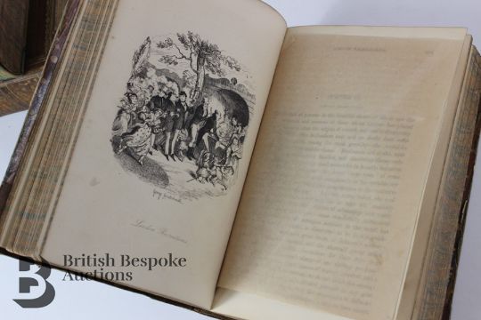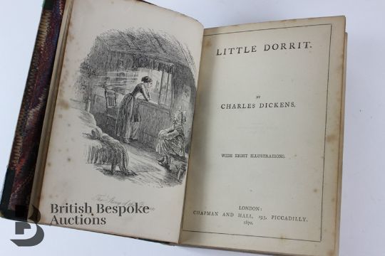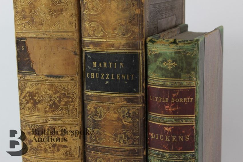 Charles Dickens: a first edition The Life and Adventures of Martin Chuzzlewit, published by Chapman and Hall, London, 1844, illustrations by Phiz. Together with Little Dorrit, published Chapman and Hall, London 1870, and Sketches by Boz. Published Chapman and Hall 1874.