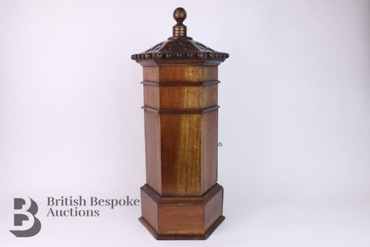 20th century mahogany letter box, after the Georgian style, approx 55 cms hexagonal base, approx approx 12 x 12 cms