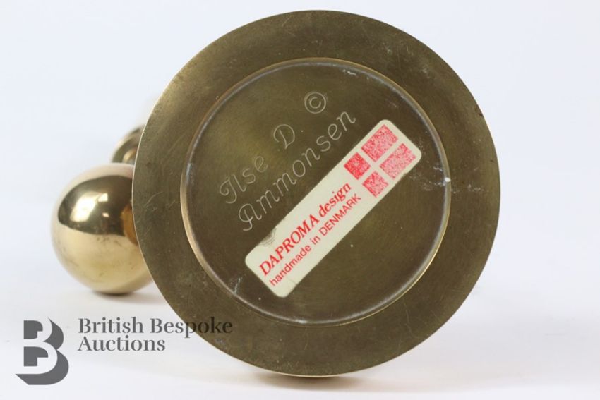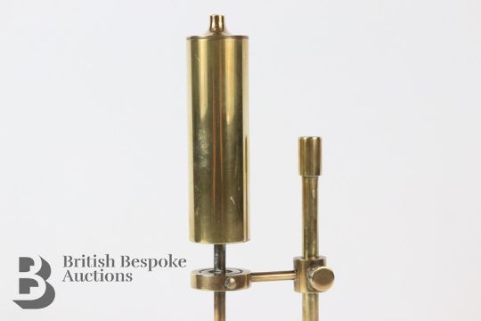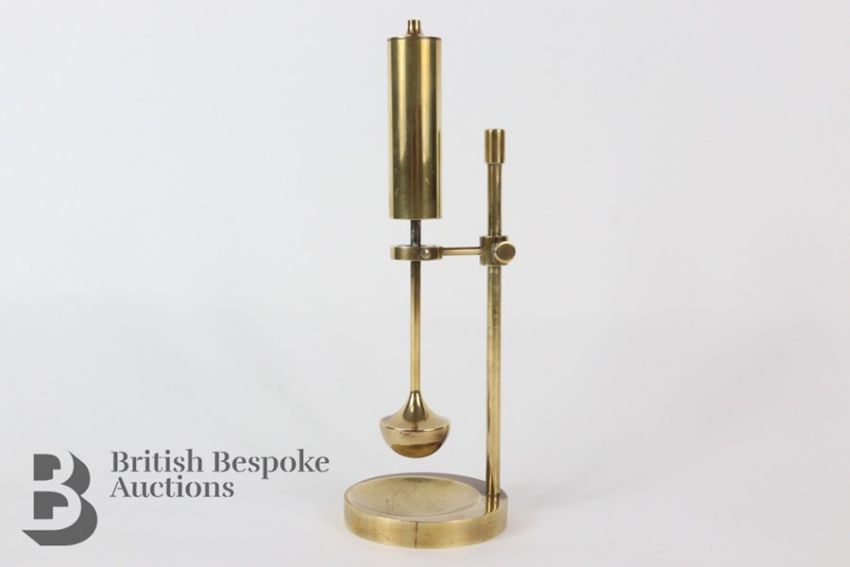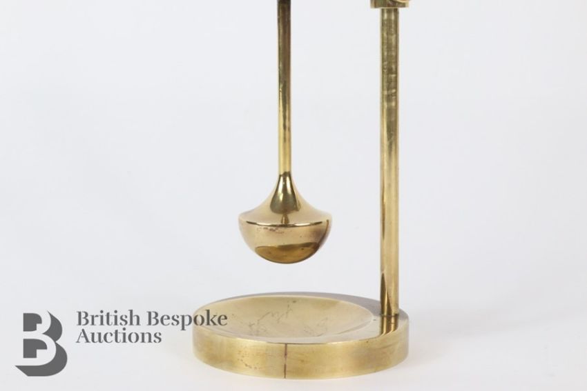 A Danish brass gyro oil lamp. The table lamp features an oil reservoir with a weighted pendulum base, with cotton cord wick. designed by Ilsa D Ammonsen, ideal for yachting.