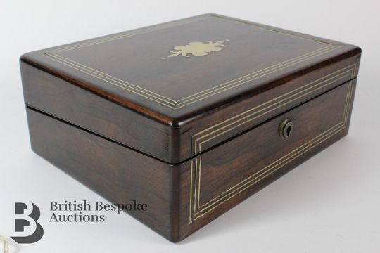 19th century rosewood writing slope, circa 1820's, with decorative brass inlay, approx 29 l x 23 w x 11 cms.Note: subject to some restoration.