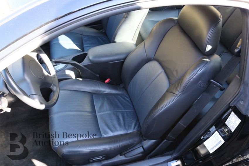 2003 black LHD Mitsubishi Eclipse GTS Coupe 10,500 miles, number plate VA52 ZBE, with one owner from new. This stunning Mitsubishi with black and contrasting midnight blue leather interior also features electric windows and sunroof, the condition is in immaculate as the car has been garaged from new. Recent service attentions include changing oil filter, air filter, cabin filter, strip and cleaning of brakes, check steering and suspension, draining the brake fluid and replacing the bleed system, a recent MOT which expires March 2022. Complete with a copy of the MOT at 10286 miles July 2005. The car having only covered less that 300 miles in the last sixteen years. This lot is complete with Mitsubishi service book, owner's manual and the original import documentation including Bill of Lading. VA52 ZBE