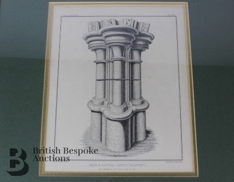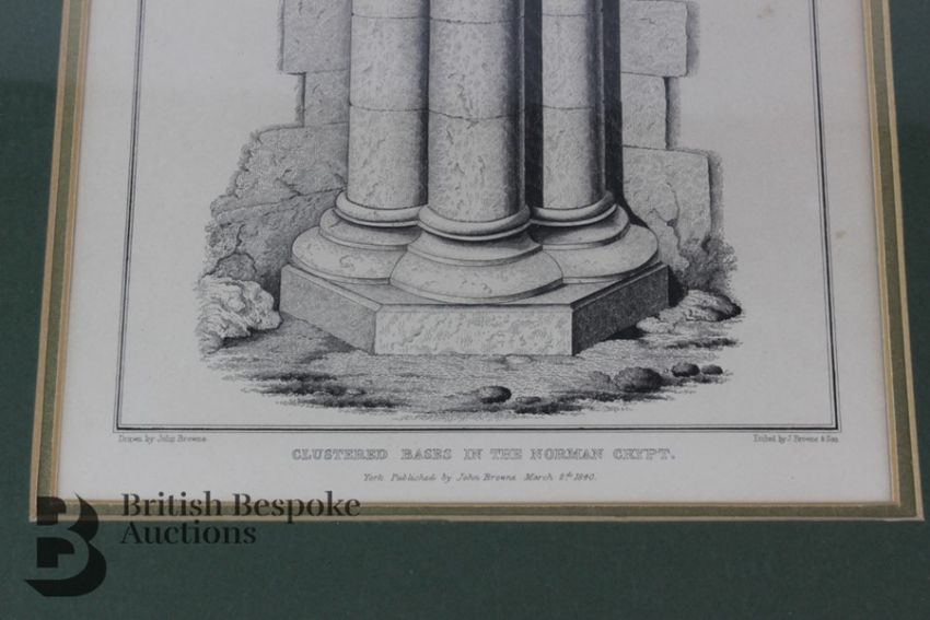 Six plates of architectural drawings from York Cathedral, York, published by John Browne 1846, etched by J Browne and Son, mounted and framed, measuring h49.5 x 44.5cms