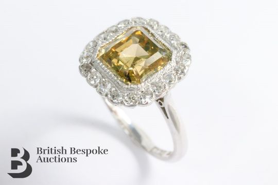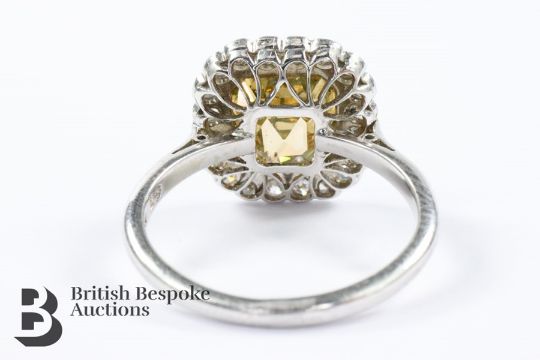 18ct gold and platinum yellow and white diamond ring. The yellow square-cut diamond approx 2.42 cts mm M & S size K, 3.5 gms, stamped 18ct and platinum.