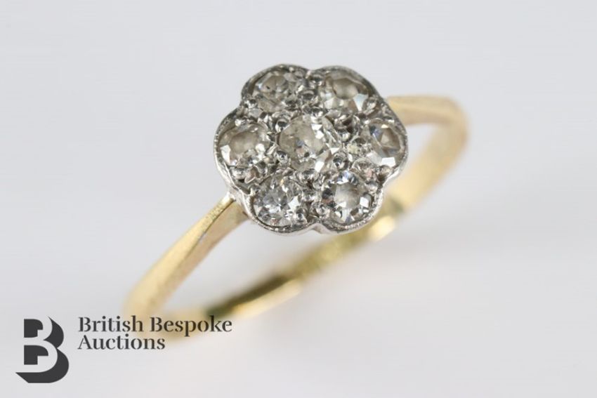 Lady's 18ct gold and platinum diamond cluster ring, size M, approx 1.6 gms.