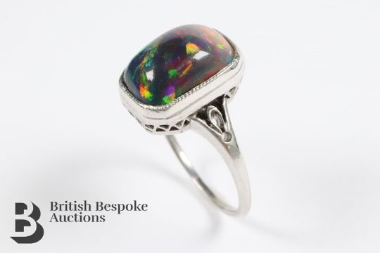 Stunning 3.08ct black opal ring, size M, approx 2.9 gms. The opal measures 12 x 8mm.