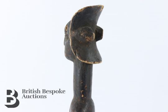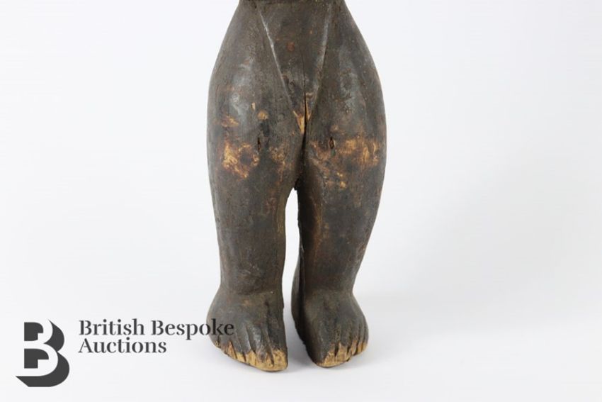 Tribal Art - East African carved wood figure, depicted standing, possibly Kamba circa 1890-1920, dark patination throughout, approx 51 cms h.