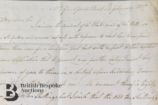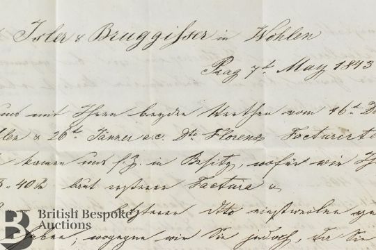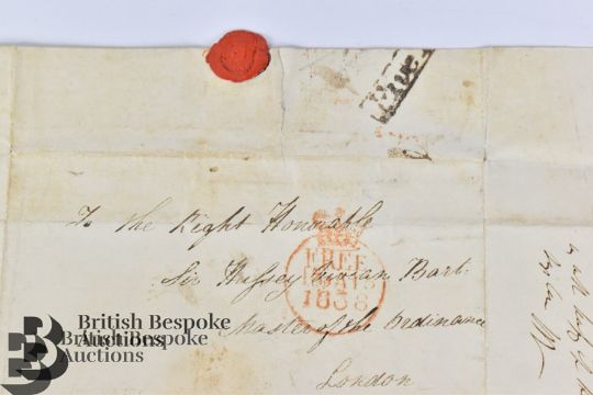 An interesting lot of 17 entire letters comprising 1790 Free letter signed Fran Gregg who was an MP and prominent lawyer; 1800 Free letter from Thomas Botfield to his father relating to the Leominster Canal; 1808 and 1814 letters bearing Ferrybridge or Thirsk marks with mileage; an 1823 letter relating to a claim for £1200; an 1829 letter bearing straight line Greta Bridge; an 1838 Free letter to Sir Hussey Vivian Master of the Ordinance referring to Lord Russell and Lord Melbourne who was then Prime Minister; an 1841 printed letter advertising the Anniversary Dinner of the Glasgow Renfrewshire Charitable Society ( tickets 10s 6d including a Pint of Wine); an 1841 letter with handstruck Paid 1d Bangor; an 1843 letter from Prag (Prague) to Switzerland; an 1850 letter relating to Letters of Administration; plus others.