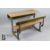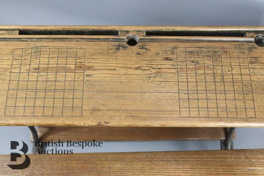 Child's antique double desk and bench seat, with metal frame, approx 92 x 59 x 59 cms.