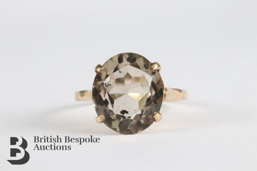 9ct gold Smoky Quartz ring, the stone approx 12 x 10 mm, size N, approx 2.28 gms.