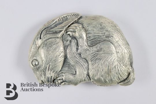 Silver plated vesta case, modelled as a rabbit, approx 60 x 45 mm.