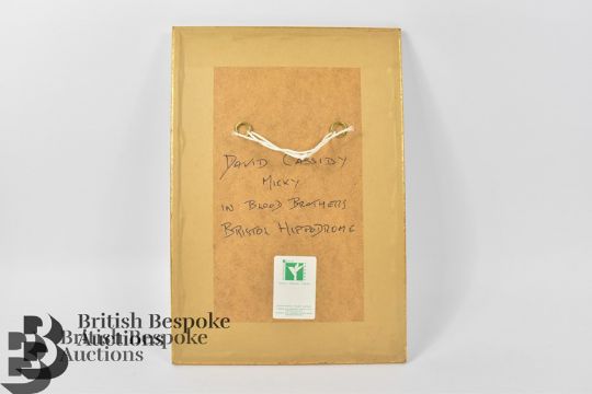 A framed theatre poster for Willy Russell's Blood Brothers, signed by David Cassidy, performing at Bristol Hippodrome Monday 13 November - Saturday 2nd December 1995. Frame measures 41 x 28cms.