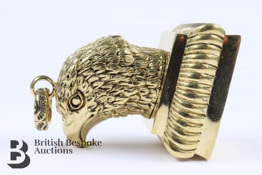 Gold plated fob seal pendant. The seal surmounted with a griffin-head, the seal itself is a statant lion, approx 45 x 27 x 32 mm.