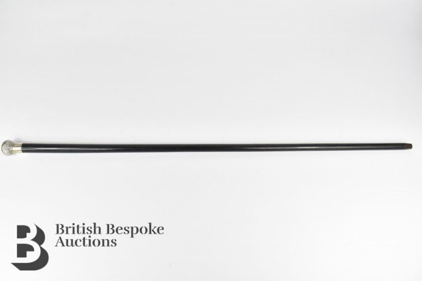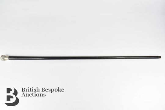Ebonized silver topped walking cane, London hallmark, dated 1923, mm NFCF, approx 90 cms l.