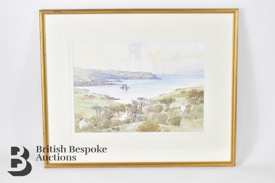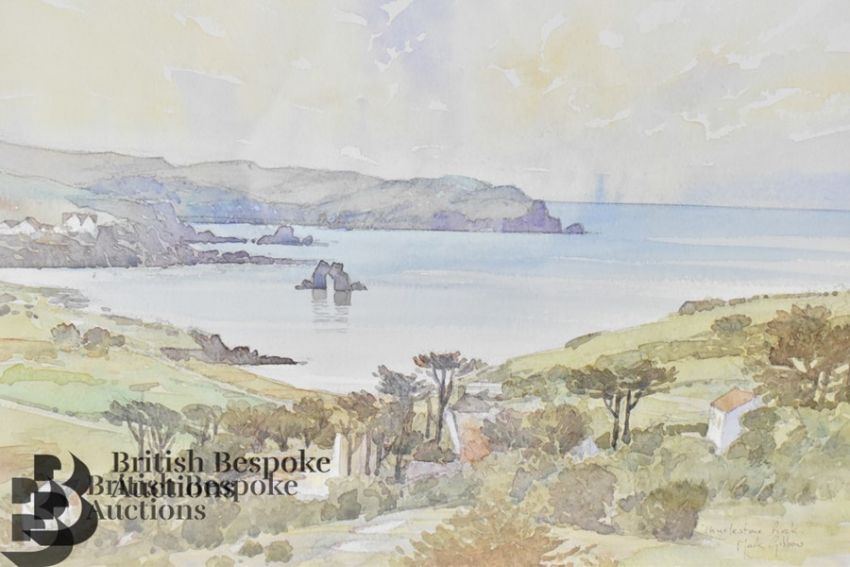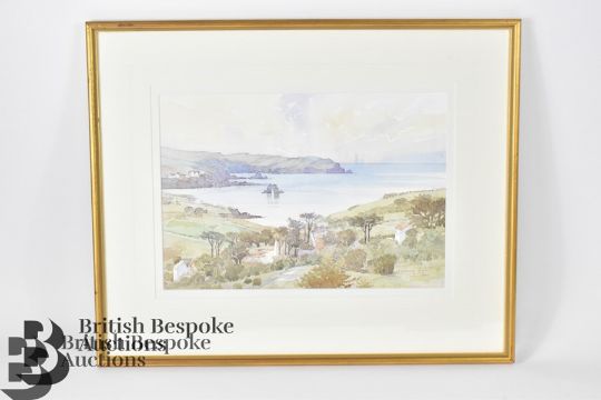 Thurlestone Rock artwork; a framed watercolour by Mark Gibbons 44 x 54cs, and a framed photograph by Tim Stanger, 47 x 57cms.