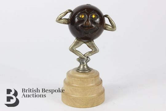 Rare WWI 'Tommy Touch' Wud Fumsup good luck mascot, paste eyes, trademark Touch Wud and registration mark to verso, approx 13 cms h.