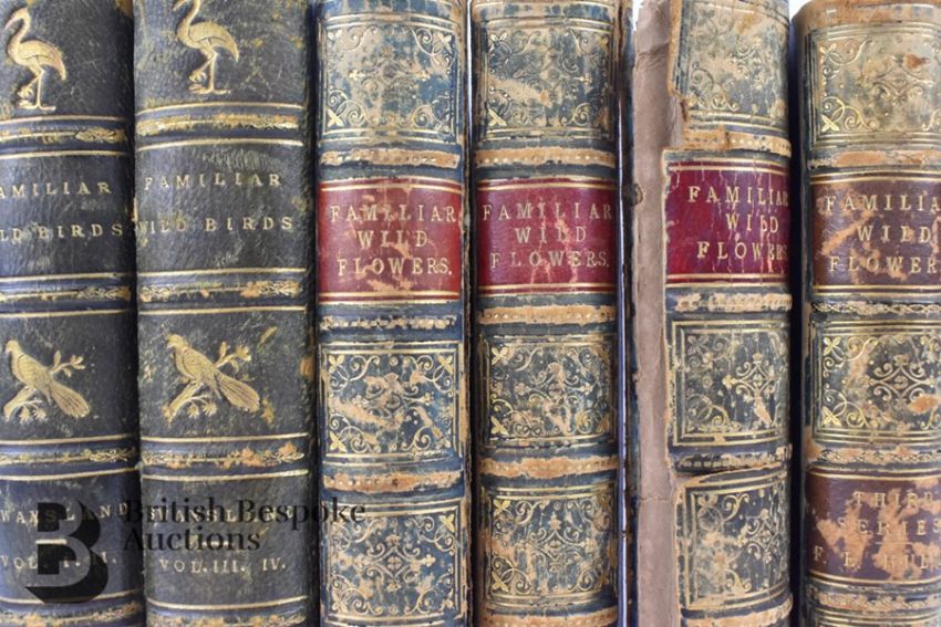 W. Swaysland Familiar Wild Birds, first series with colour plates as illustrated by A. Thorburn and others, published by Cassell and Company Limited London circa 1901 together with Familiar Wild Flowers F. Edward Hulme F.L.S; F.S.A fourth series with coloured plates, published by Cassell & Company. (6)
