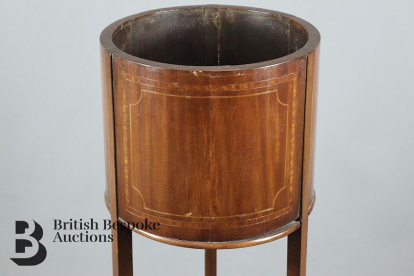 Edwardian jardinière, circular with decorative inlay, approx 96 cms h x 32 cms diameter.