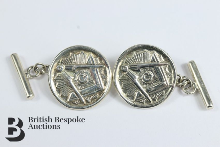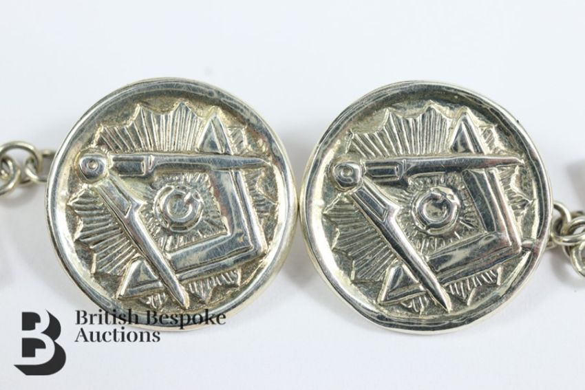 Pair of silver Masonic cufflinks, cased, approx 10.9 gms.