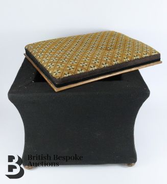 Two box commodes; one on wheels measuring h 50cm x w 62cm x d 50cm, and the other with tapestry pillow measuring h 50cm x w 56cm x d 40cms.