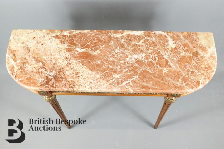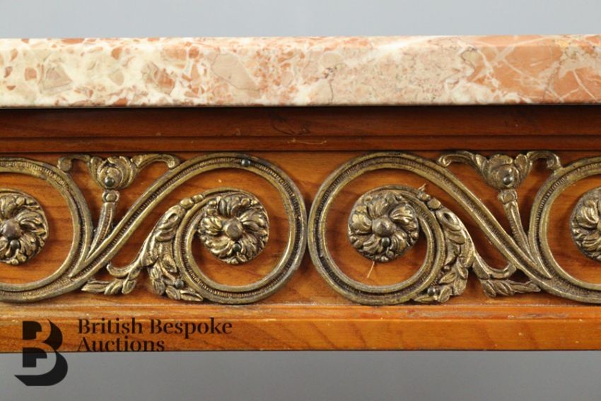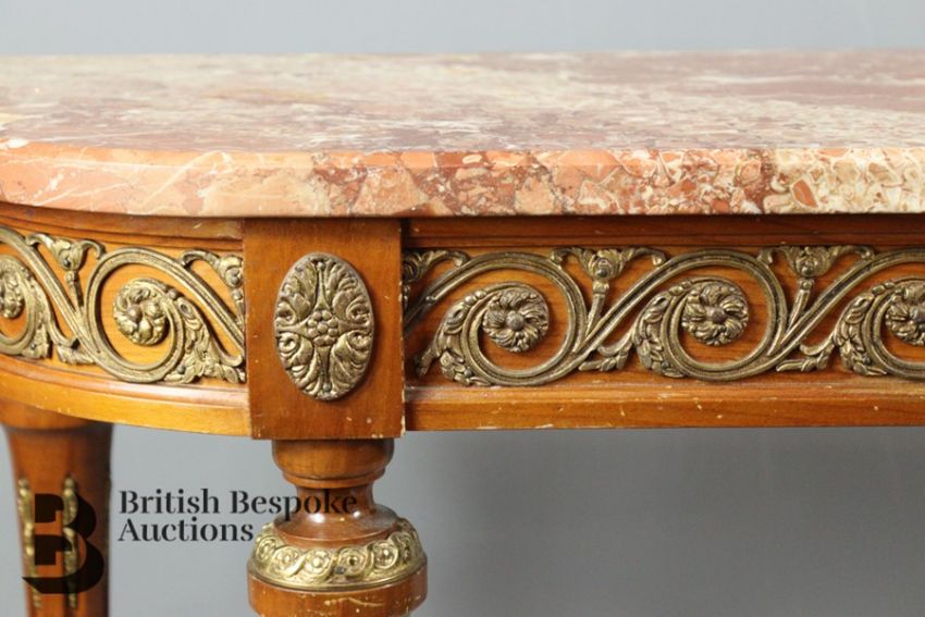 French console table, with rose marble top, approx 95 w x 35 w x 72 h cms.