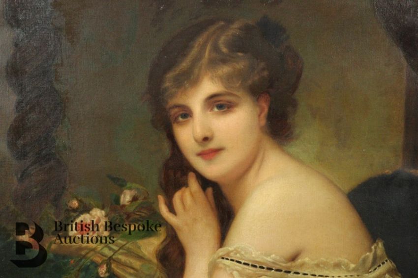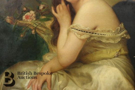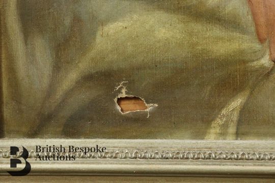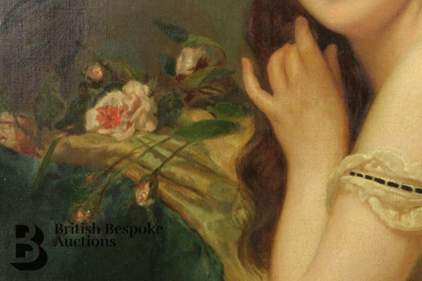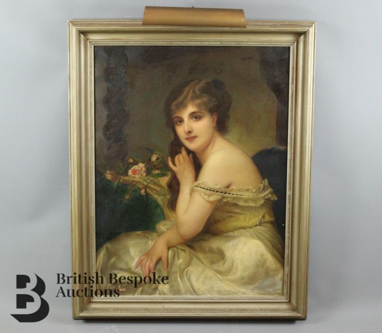 Circa 1900s oil on canvas, half length portrait of a beautiful young woman, title to verso possibly reads Lady Neigull, framed, approx 64 w x 88 h cms, unsigned. Condition report: tear to lower left extremity, small area of paint loss to the middle ground, and also a tear to the canvas lower right, see pictures as they form part of the condition report.