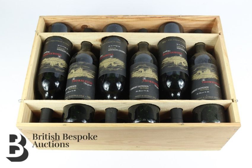 Case of 12 Thornleigh Vineyard (Victoria, Australia) Cabernet Sauvignon 2002, bottled by Vinpat International in wooden crate.