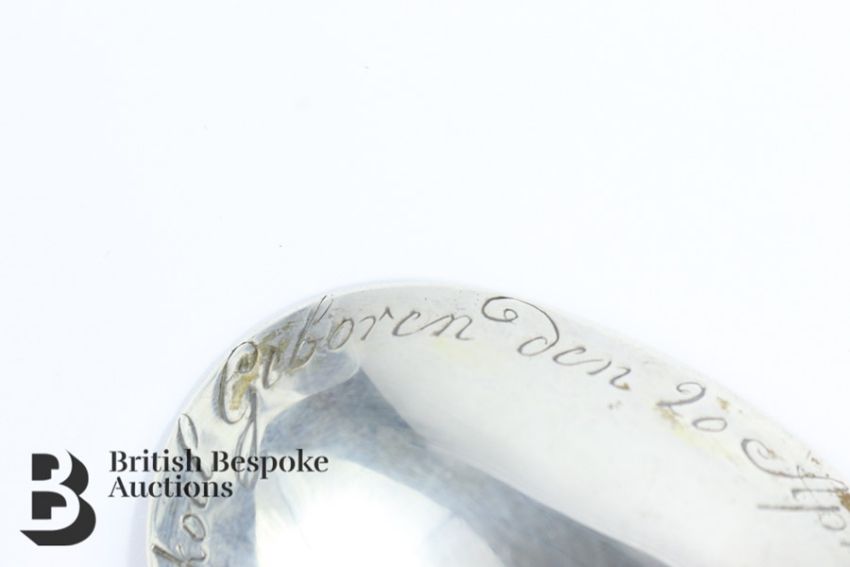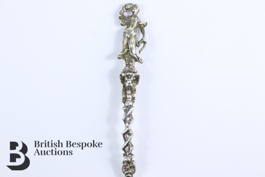 19th century Dutch christening spoon, the terminal cast with a feminine figure , the reverse of the bowl is engraved Hermanus B. Leemkoel gebören  20th April 1826, approx 17 cms in length, approx 45.2 gms.