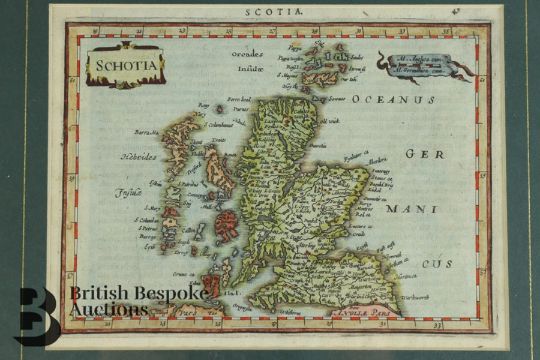17th century map of Scotland from the Jansson Mercator Atlas Minor, entitled Schotia copperplate engraving published by Jan Jansson in Amsterdam with Latin text to the reverse, map includes Hebrides islands, Aberdone, Edinburg, Sterling amongst others, circa 1628.