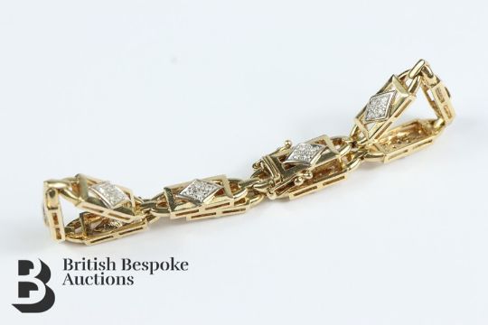 9ct yellow gold bracelet set with approx  pts of dias, approx 17 cms in length, 11.3 gms.