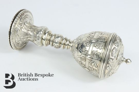 Silver pyx, Dublin hallmark dated 1911, mm Edmund Johnson, approx 15.3 cms h, approx 191 gms.