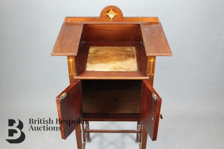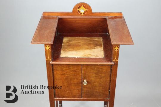 Edwardian wash stand, approx 49 x 36 x 87 cms h, with rose marble insert, on spade feet, with straight stretchers.