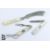 Silver bladed fruit knives, including a mother of pearl handled decorative curved tea knife Sheffield hallmark dated 1896 mm M & W; silver bladed folding fruit knife Sheffield hallmark dated 1922, silver fruit knife with bright-cut decoration Sheffield hallmark dated 1900 mm A & D. (3)