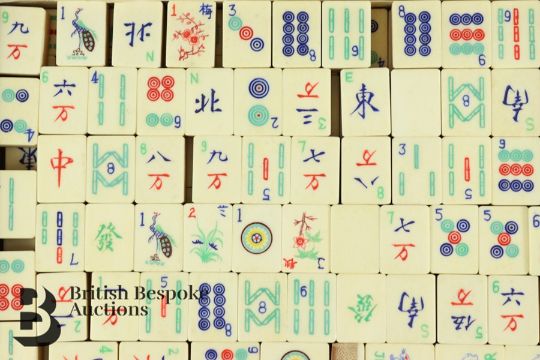 Mah-jong set, originally from Hong Kong but brought to Saudi Arabia and used at the embassy there, complete with playing pieces and The Game of Mah Jong by Max Robertson (Twentieth Edition).