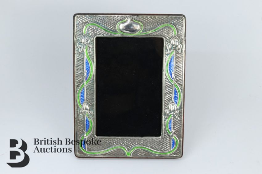 Silver and enamel photo frame, easel back, approx 20 x 15 cms.