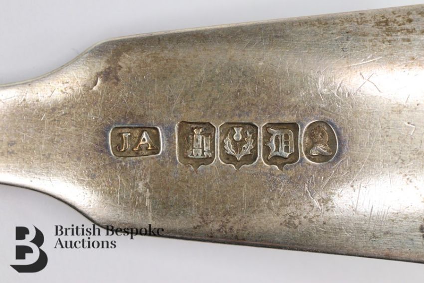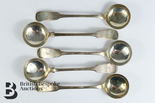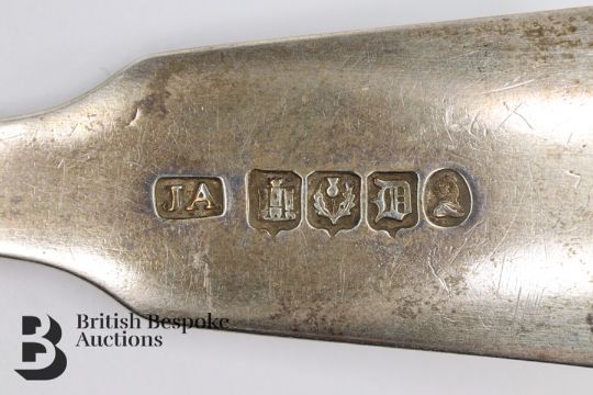 Five Georgian Scottish silver tot ladles, Edinburgh hallmark, dated 1835, mm JA, monogram D, approx 153.6 gms.