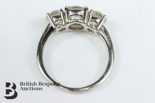 18ct white gold three stone diamond ring, set with approx 2.2 cts of dias, size K, approx 3.2 gms.
