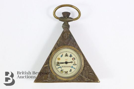 A self-wind brass-cased pocket watch. The triangular form pocket watch having Masonic symbolism, approx 55 x 55 mm.