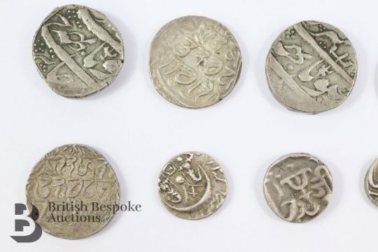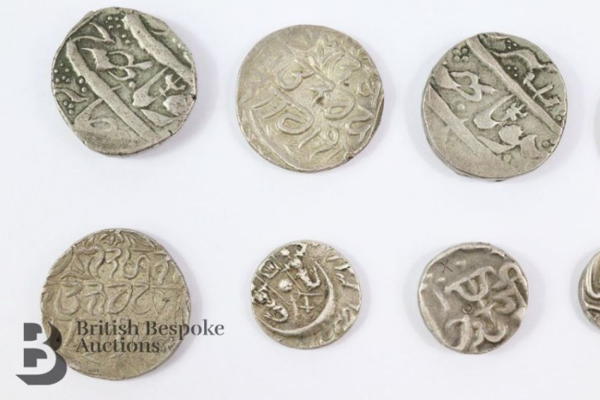 Early Indian silver coins, five Mughal coins and four early Indian State coins.