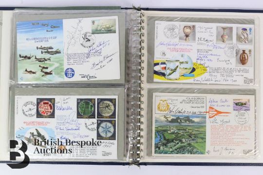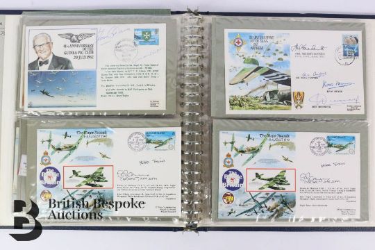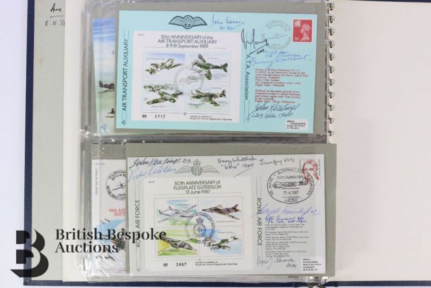 Album of Certified Anniversary Covers, including a number of collectable multi-signed, certified covers relating to the Battle of Britain Anniversary and various related events together with photo print in the front of the album of the Pilots of 'B' Flight No.32 Squadron taken at RAF Hawkinge on 29th July 1940 pilots include PO RF Smythe, K.R Gillman, J.E Proctor, Flight Lieutenant PM Brothers; PO DH Grice, PO P.M Gardner, all survived the war except Keith Gillman who was posted missing 25th August 1940. The photographic print is signed in pen by Wing Commander Peter V. Ayerst DFC (Battle of Britain pilot), John Keatings Air Gunner with 219 Sqn Battle of Britain, Keith Ashley Lawrence DFC, Battle of Britain pilot one of the last surviving members of The Few, Flt Lt R L Jones Battle of Britain Pilot, Terence Kane Battle of Britain Pilot 234, 421 & 603 Squadrons, Percival Graham Leggett one of the youngest pilots to survive the Battle of Britain flew in 615, 245 and 46 Squadrons, Joseph Thomas Ronald Chamberlain Battle of Britain pilot. Many of the covers are limited editions and rarely available with the number of signatories. Album contains many of the Battle of Britain Pilot's, 'The Few' together with both VC and GC holders including those personally signed by Ian Fraser VC DSC RD and Bar JP, William Reid VC, Edward Kenna VC, Richard Annand VC, Harold Ervine Andrews VC, Eric Wilson VC, Patrick Porteous VC, Brig. Alaster Person CB,DSO, Lt General Sir Napier Crockenden DSO, OBE, Lt Col.B.S.T Archer GC, P.J Gardner VC, Neville Duke (British Test Pilot and Fighter ACE of WWII), RL Jones Battle of Britain fighter pilot with 19 & 64 Sqdns, Johnnie Johnson, Bill Speakman amongst many others.
