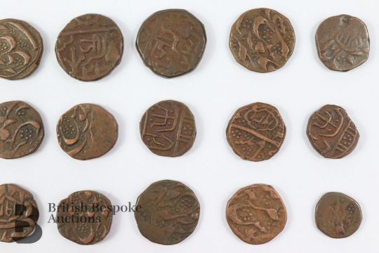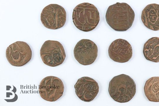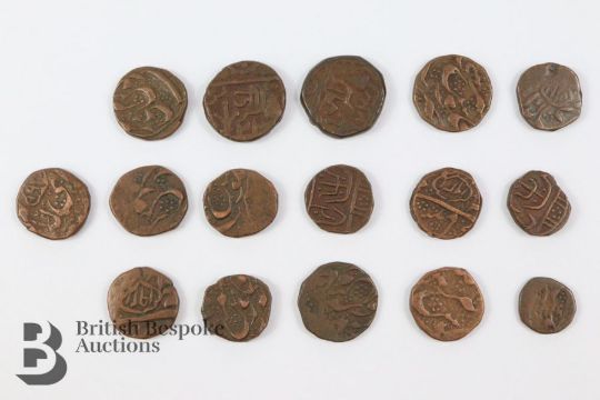 Ancient Indian Mughal and other copper coins, 16 in total.
