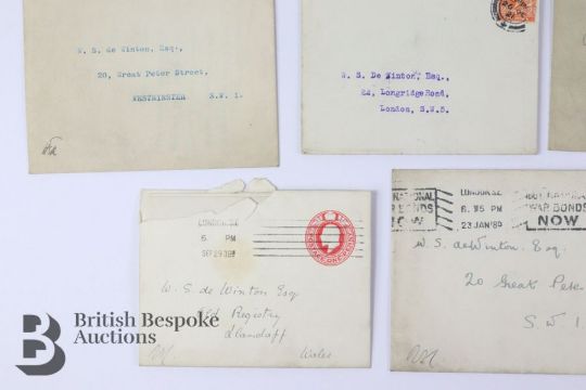 Ecclesiastical ephemera (1909-1921) an interesting lot of 24 letters largely from Archbishops and Bishops, some handwritten and some typed, all signed, to Wilfred Seymour de Winton (1856-1929) who was a prominent churchman in Wales and a member of the Canterbury House of Laymen as well as being a director of Lloyds Bank. There are four letters with their original envelopes from Randall, Archbishop of Canterbury, typed but each signed Randall Cantuar. There are letters from the Archbishop of York, The Bishops of Norwich, Chelmsford, Southwell, Hereford, Peterborough, St Edmundsbury & Ipswich and the Dean of Westminster.